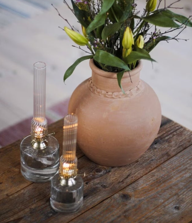 Vi har et bredt udvalg af petroleumslamper, vælg mellem den klassiske petroleumslampe, der er nem at placere, væghængt eller en, der kan hænge fra loftet. Uanset hvilken dekorativ lampe du vælger, vil du oplyse dit hjem med en gylden glød. Vores petroleumslamper fra Karlskrona Lampfabrik er fremstillet i hånden i Sverige på traditionel vis. Koholmen petroleumslampen kan fås med flere forskellige farver på oliehuset.