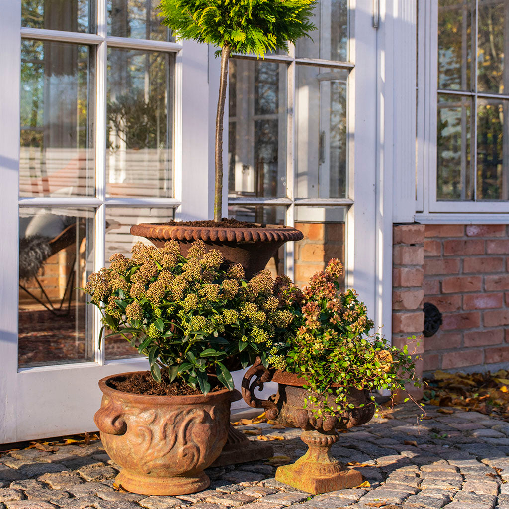 - Glem ikke at dekorere med dejlige planter. For at øge hyggefaktoren endnu mere anbefaler vi, at du tjekker vores bålkurve i smedejern. Vi har to forskellige størrelser, en stor og en lille. Om aftenen er de smukke og bidrager meget til stemningen, men i en mindre have er det ofte mere værdifuldt at fokusere på detaljerne.