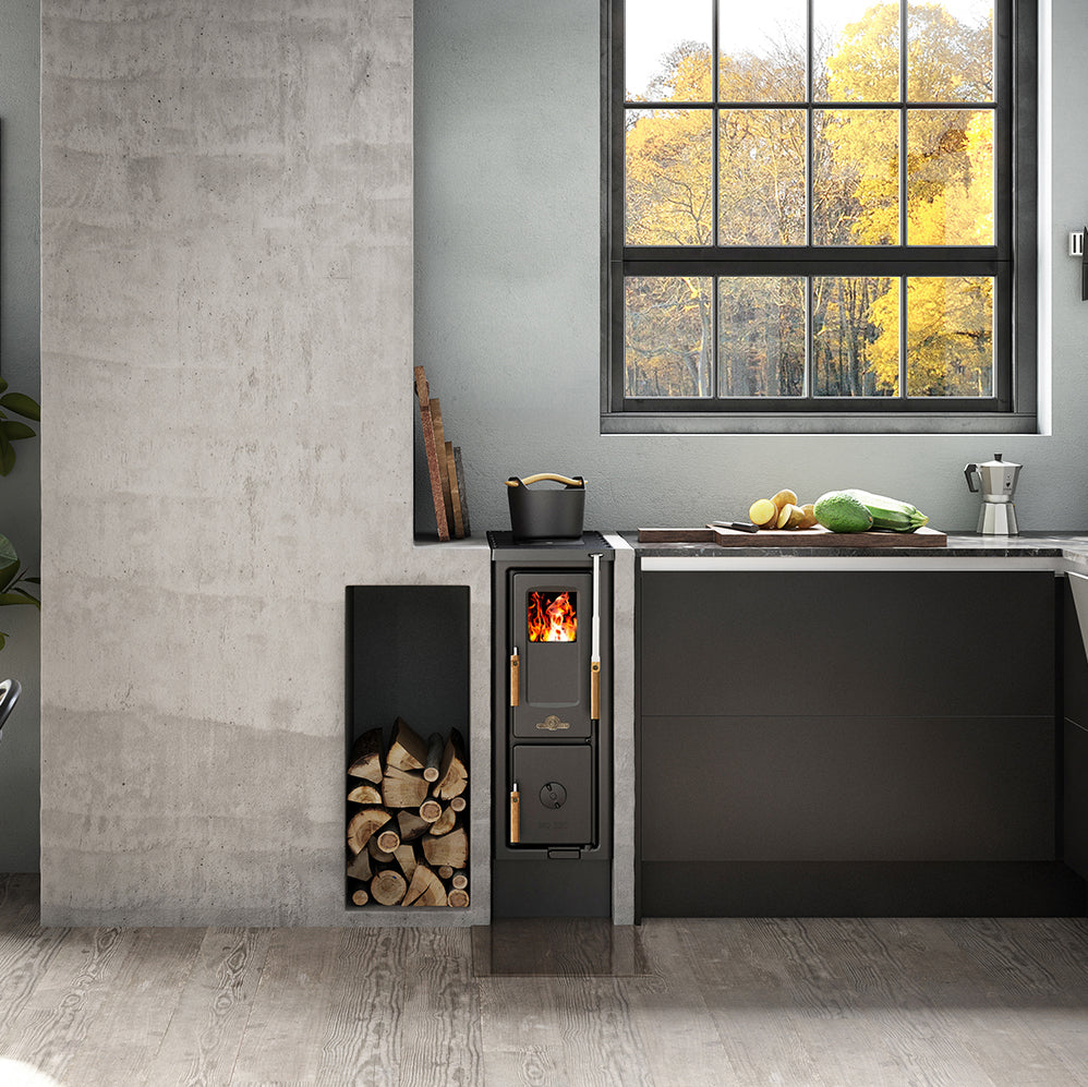 I dag er et såkaldt smalt komfur et populært supplement til det almindelige el-komfur i mange hjem. Fordi det smalle komfur fylder så lidt, er det nemmere at passe ind i køkkenet derhjemme end en bredere brændeovn. At installere en brændeovn derhjemme bliver mere og mere almindeligt. Du vil have et roligt, trygt og harmonisk sted at komme hjem til. En brændeovn er en nem måde at øge hyggefaktoren og gøre den hjemlig. Det kan også være en fin kontrast til et ellers moderne indrettet hjem. Nogle vil også gerne have en brændeovn derhjemme, så de kan lave mad, selvom strømmen går. Da de fleste husstande i dag har et almindeligt el-komfur, kan det nogle gange være svært at finde plads til en brændeovn også. Derfor bliver den smalle brændeovn stadig mere populær, fordi den er et perfekt supplement til el-komfuret, samtidig med at det giver hjemmet det "lille ekstra".