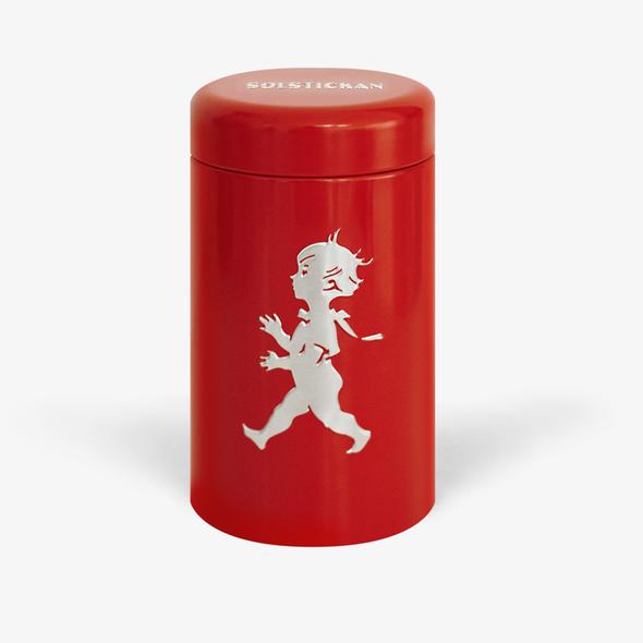 Et flot tændstikrør i rødt tin med et billede af den klassiske Solstickepojken skabt af Einar Nerman i 1936. Røret indeholder omkring 100 ekstra lange svenske kvalitets tændstikker lavet i Tidaholm af asp fra svenske skove.