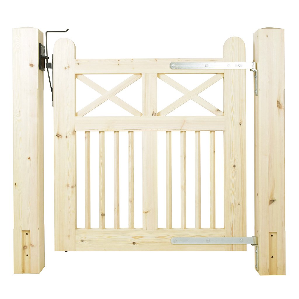 Du får her en tidløs enkelt trælåge i modellen krydslåge, der er fremstillet af svensk fyrretræ. En klassisk krydslåge i træ er lige så dekorativ som funktionel og forstærker husets karakter, mens trælågen bidrager til en indbydende entré. Eftersom lågen er det første, man mødes af, er det vigtigt at vælge en trælåge, hvis design er tiltalende og harmoniserer med omgivelserne med hensyn til stil, farve og design. Vores krydslåge er fremstillet i hånden i massivt svensk fyrretræ, som gør hver trælåge unik takket været et levende materiale, og at den er håndlavet. Massivt fyrretræ i kombination med de dele, der monteres, bidrager til en lige så slidstærk som holdbar trælåge. Krydslågen er en velkendt model med en smuk og solid indramning af to liggende kryds med stående lameller i bunden. Krydslågen har et luftigt og klassisk designsprog, der passer lige så godt sammen med et hegn, som en stenmur eller en frodig hæk. Det betyder, at trælågen i modellen krydslåge passer lige så godt til ældre gammeldags huse som de mere moderne huse i en klassisk stil.Trælågen sælges komplet med stabile matchende lågestolper, lågeside, stolpejern, lukkebeslag, hængsler og lågestop. Lågestolpernes højde er 1150 mm, og den totale bredde inklusive stolper er 1250 mm. Leveres sammen med stolpebeslag, der støbes ind i betonsokler til indfæstning i lågestolperne. Modellen krydslåge fås i tre forskellige designs, hvor bredden adskiller dem; enkelt, dobbelt og stor dobbelt. Samtlige størrelser fås i ubehandlet fyrretræ. En trælåge i ubehandlet fyrretræ giver dig mulighed for selv at male lågen, hvilket kræves, for at lågen kan holde på lang sigt samt tåle vind og vejr. Lågen leveres umonteret.Lågen leveres med galvaniserede hængsler, som enten monteres ubehandlet eller males over.