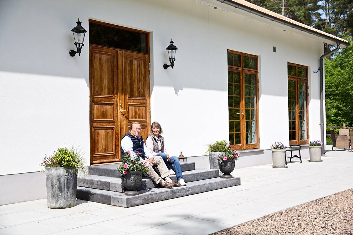 En hoveddør i olieret teak er et perfekt valg, hvis du vil forstærke det landlige indtryk af dit hus. Kontrasten mellem det massive træ og facaden efterlader ingen ligeglade. Tag et kig på den reportage, vi lavede hjemme hos Karin og Richard, for at få en idé om, hvordan det kan se ud. Karin og Richard købte bl.a. en yderdør i teaktræ, foldedøre, et orangeri og glasdøre til terrassen.