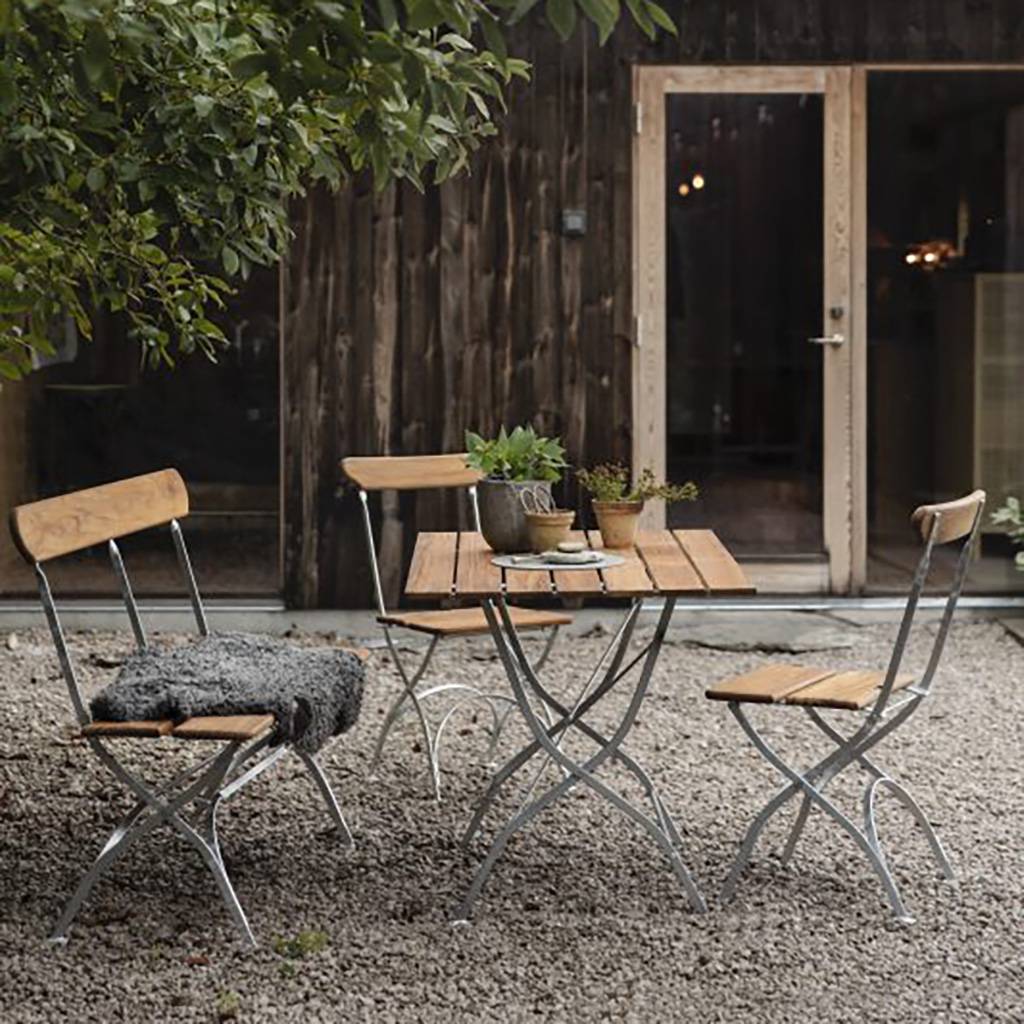 Stolen, sofaen og det aflange bord i Bryggeriserien er sammenfoldelige, hvilket letter opbevaring af møblerne, når udendørssæsonen er slut, og møblerne skal opbevares om vinteren.