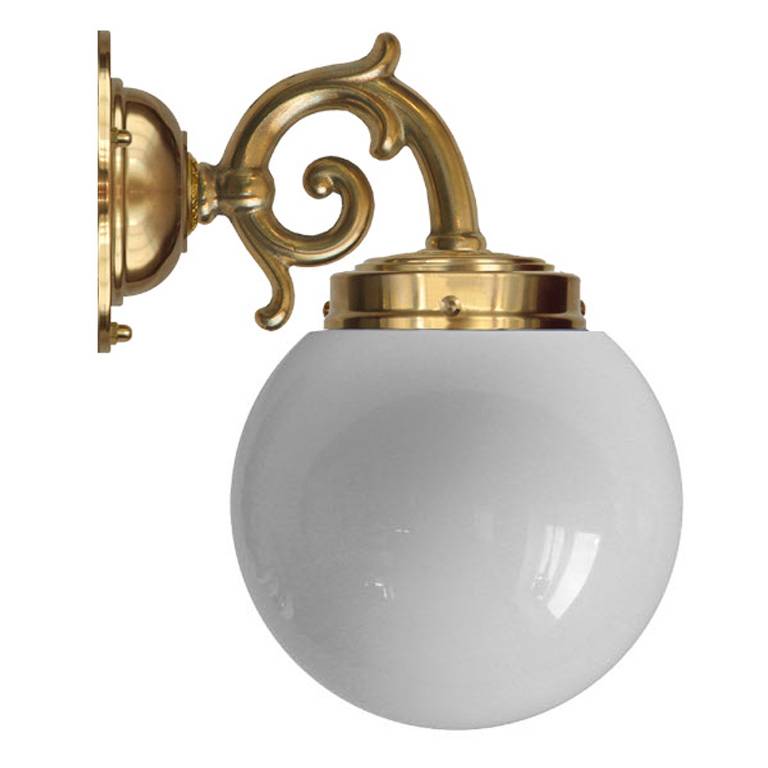 Topelius væglampe er en smuk og klassisk messinglampe fra Karlskrona Lampfabrik, hvor den støbte messing dominerer. Den støbte arm rimer meget fint på støbejernsbadekarrets løvetæer. Messingramme og rund skærm i hvidt opalglas. På trods af det dekorerede design opfattes Topelius som stilfuld og sparsom, hvilket gør den til en badeværelseslampe, der er nem at kombinere med andre møbler.