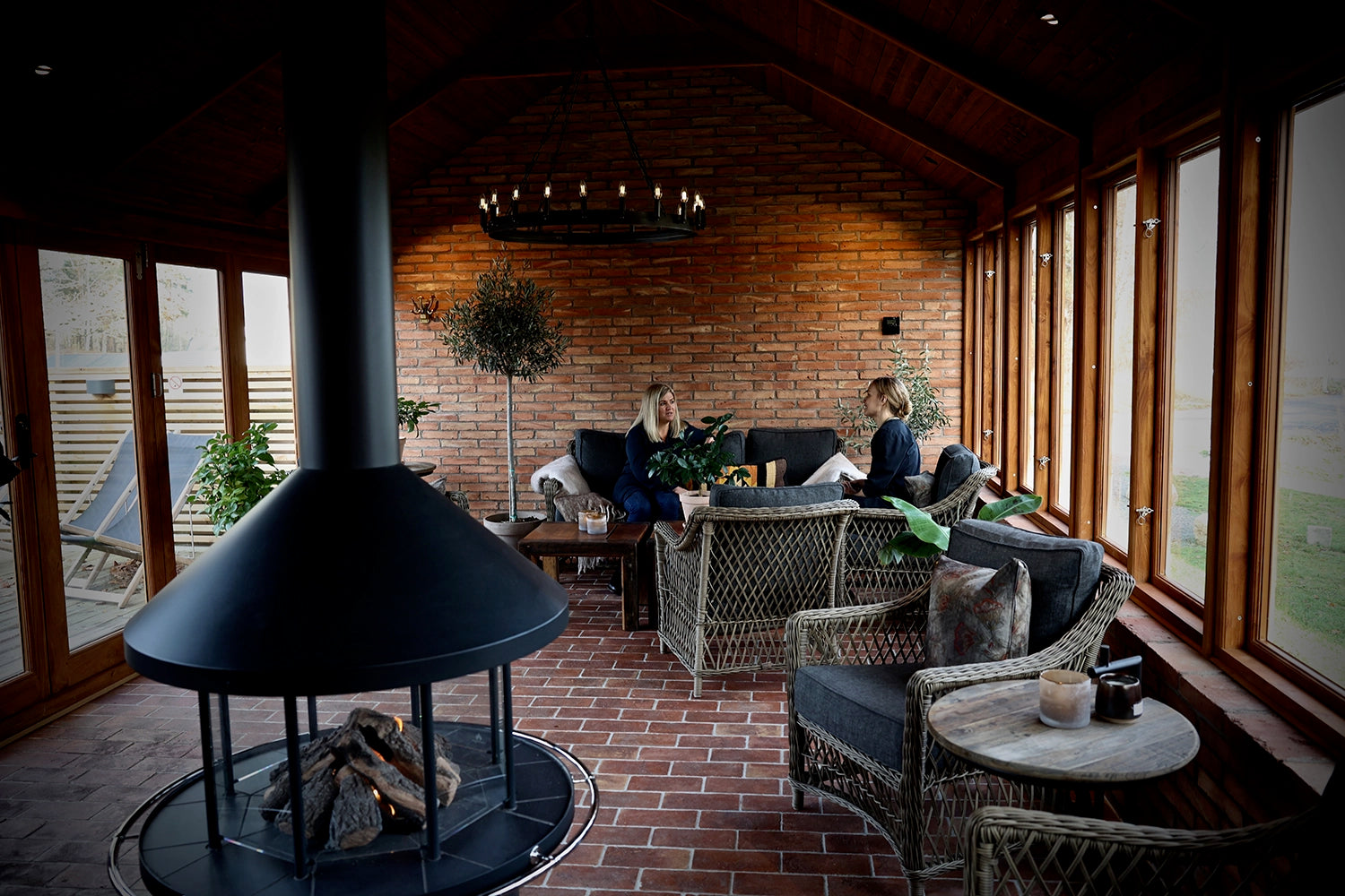 Ud fra denne ikke helt enkle ligning blev ideen om et orangeri født. Et sted, der ikke bare er en bygning, men en oplevelse i sig selv, hvor gæsterne kan tage et fodbad og slappe af foran en beroligende ild.