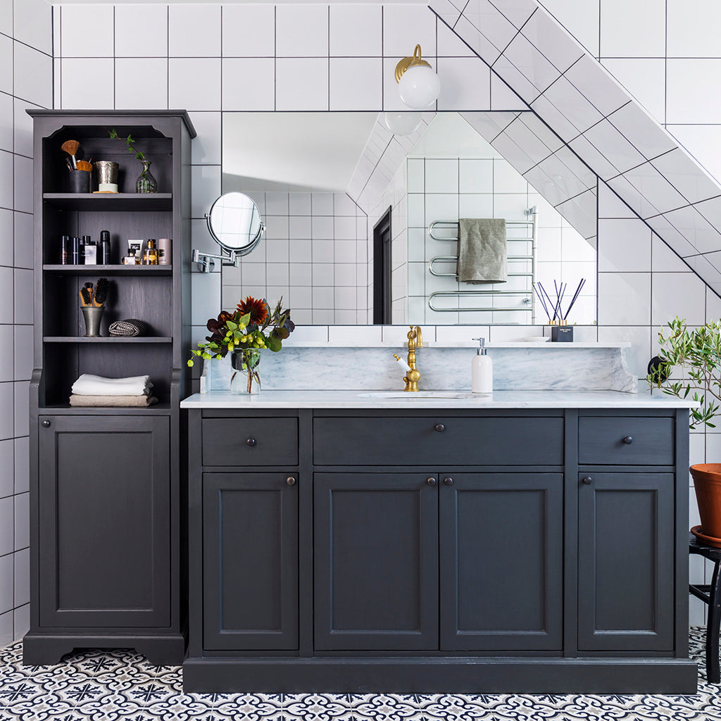 Vores klassiske og stilfulde badeværelsesmøbler er håndlavede af solide materialer og penselmalede.