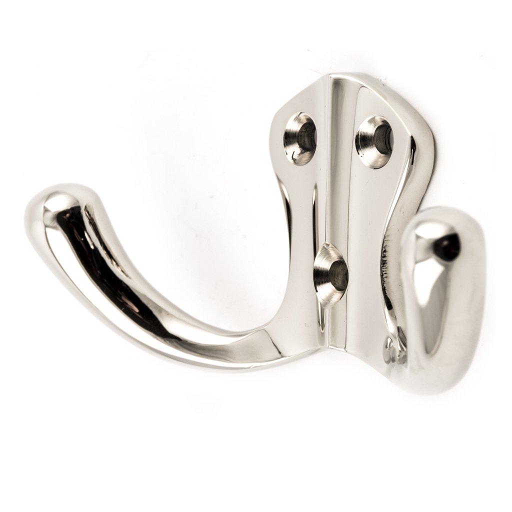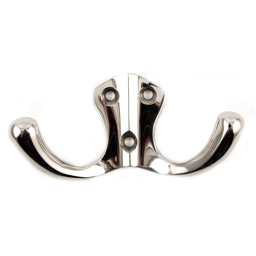 En klassisk dobbeltkrog i ubehandlet messing, der passer til ophængning i badeværelser, entréer, soveværelser, garderober, walk-in closet etc.